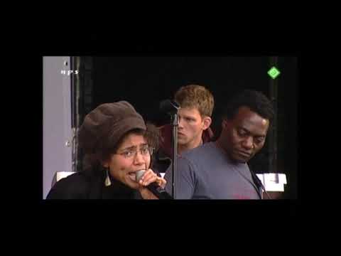 The Frames zijn een succes; zanger Glen Hansard reageert verbaasd als er twee jongens in de kraag worden gevat die op het podium willen klimmen. “Hee, wat doen jullie? Dit is toch een gratis festival!”, roept hij