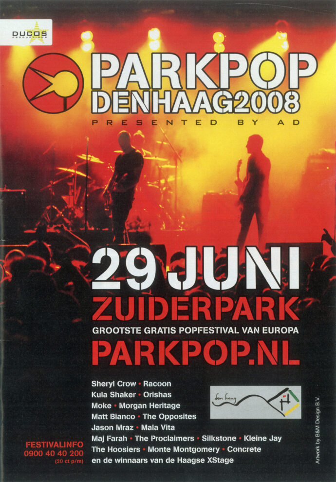 De volledige line-up van 2008: Mala Vita | The Hoosiers | Jason Mraz | The Proclaimers | Racoon | Sheryl Crow | Silkstone | Moke | Matt Bianco | Monte Montgomery | Kula Shaker | Bujumouse | Lady K-Wida | L4 | Concrete | Kleine Jay | The Opposites | Maj Farah | Morgan Heritage | Orishas