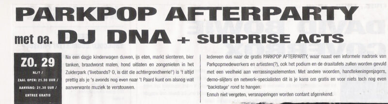 In 1997 vindt voor het eerst een afterparty plaats, in het Haagse Paard