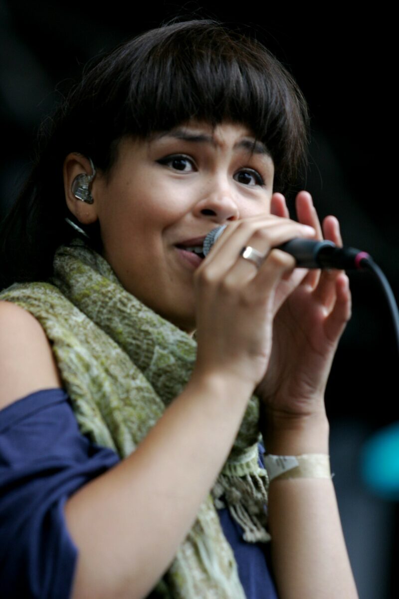 De Noorse Maria Mena neemt een gouden plaat in ontvangst en kan haar emoties niet in bedwang houden